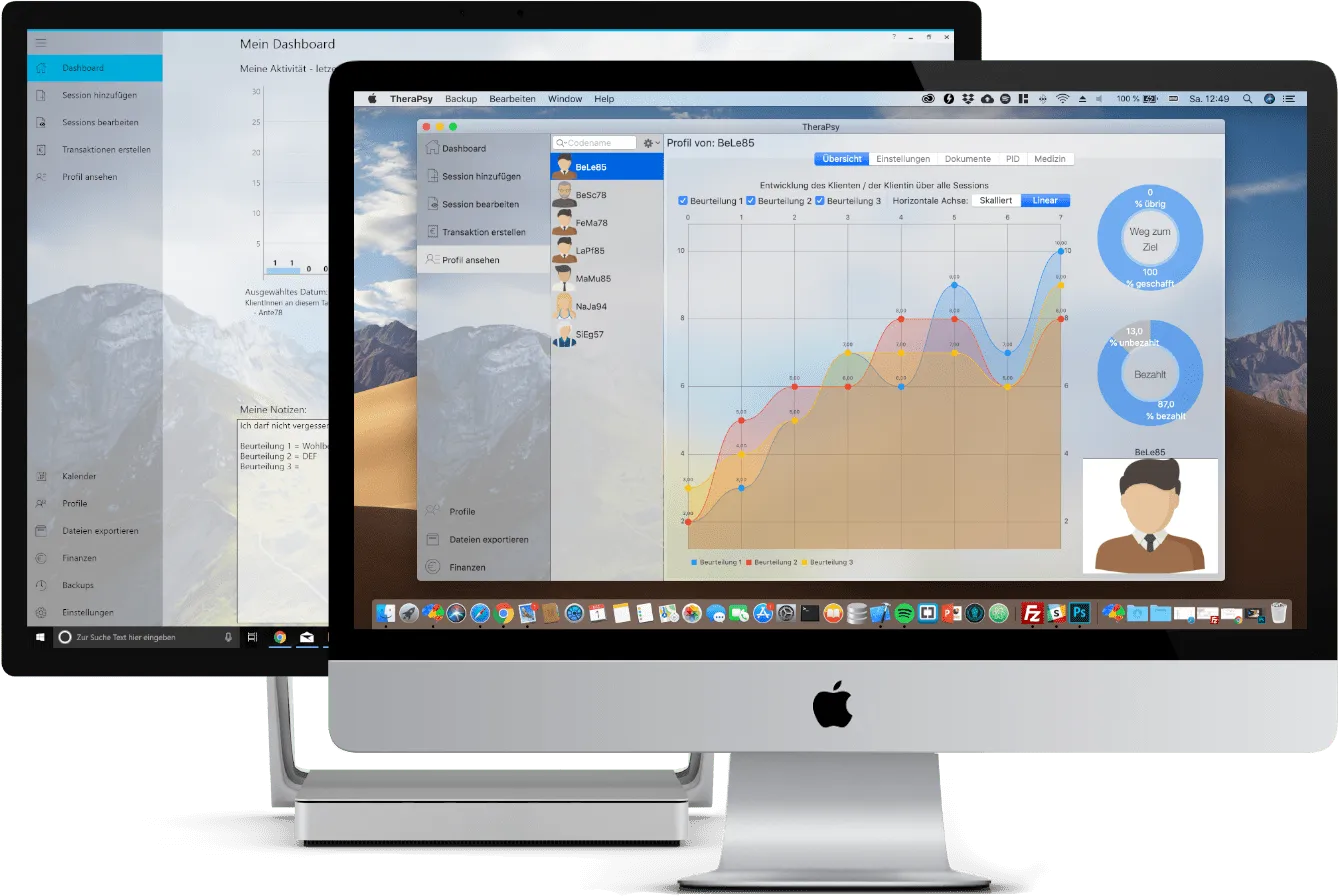 Aktuell ist TheraPsy primär für Desktop und Laptop optimiert (Windows-PCs, Apple MacBooks/iMacs). Eine eigenständige Mobile App für Smartphone oder iPad ist derzeit noch nicht verfügbar, da der Fokus auf der umfangreichen Desktop-Funktionalität lag. Einschränkung: Die Software an sich läuft nicht direkt unter iOS oder Android. Dennoch können Nutzer, die ein Windows-Tablet (z. B. Microsoft Surface) oder ein MacBook nutzen, TheraPsy mobil einsetzen, da es auf diesen Geräten voll lauffähig ist. Für viele Heilpraktiker reicht das aus – etwa ein MacBook in der Praxis und mobil mitnehmen zu Hausbesuchen.
